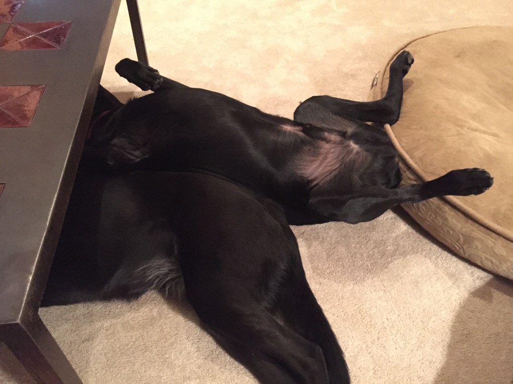 My daughter giggled and said “Mom, we (her sister and herself) call that puppy shavasana, cause it’s just like the corpse pose in Yoga!”