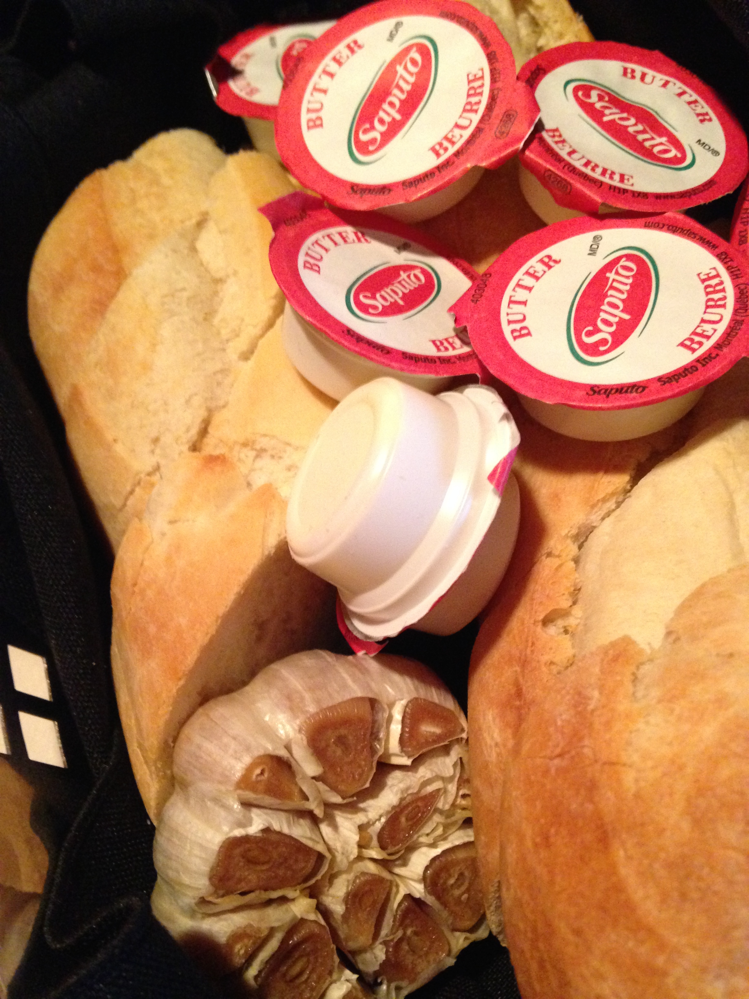 Dinner tonight was in town, still in Sault Ste. Marie, was a great little Italian place a short ride from the motel: Solo Trattoria. The food is excellent and no one looked at us oddly for being in our gear! There are lots of great eats in this town, this is the one that was recommended to us, and which I can recommend to you. You know you’ve struck golden when they start you out with a head of fresh roasted garlic and yummy warm bread, and be sure to try their delicious Cesear salad!