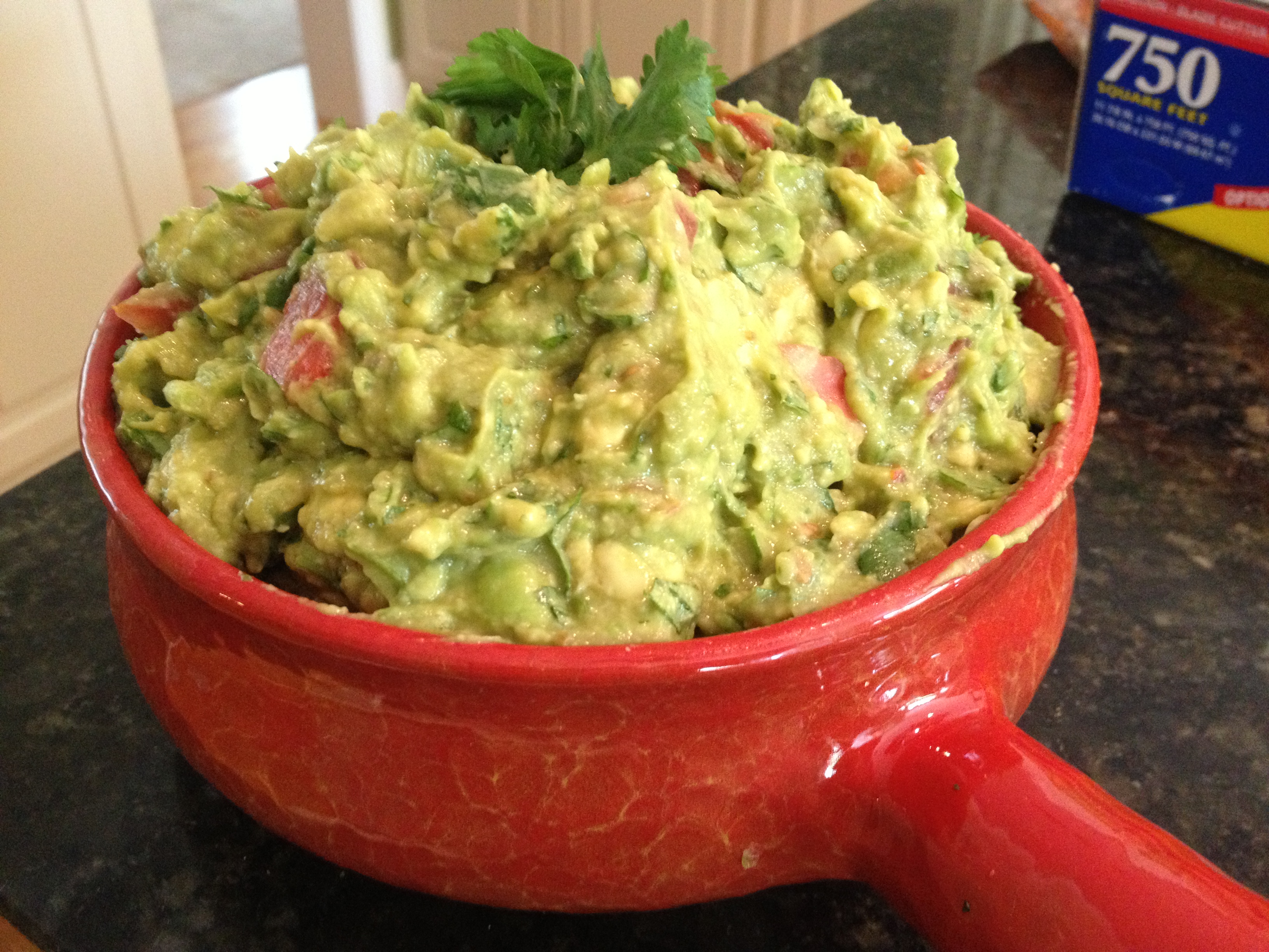 Homemade and hearty Guacamole, with hearty tortilla chips. (Thank you Miss Dalia for all your help churning out food!):