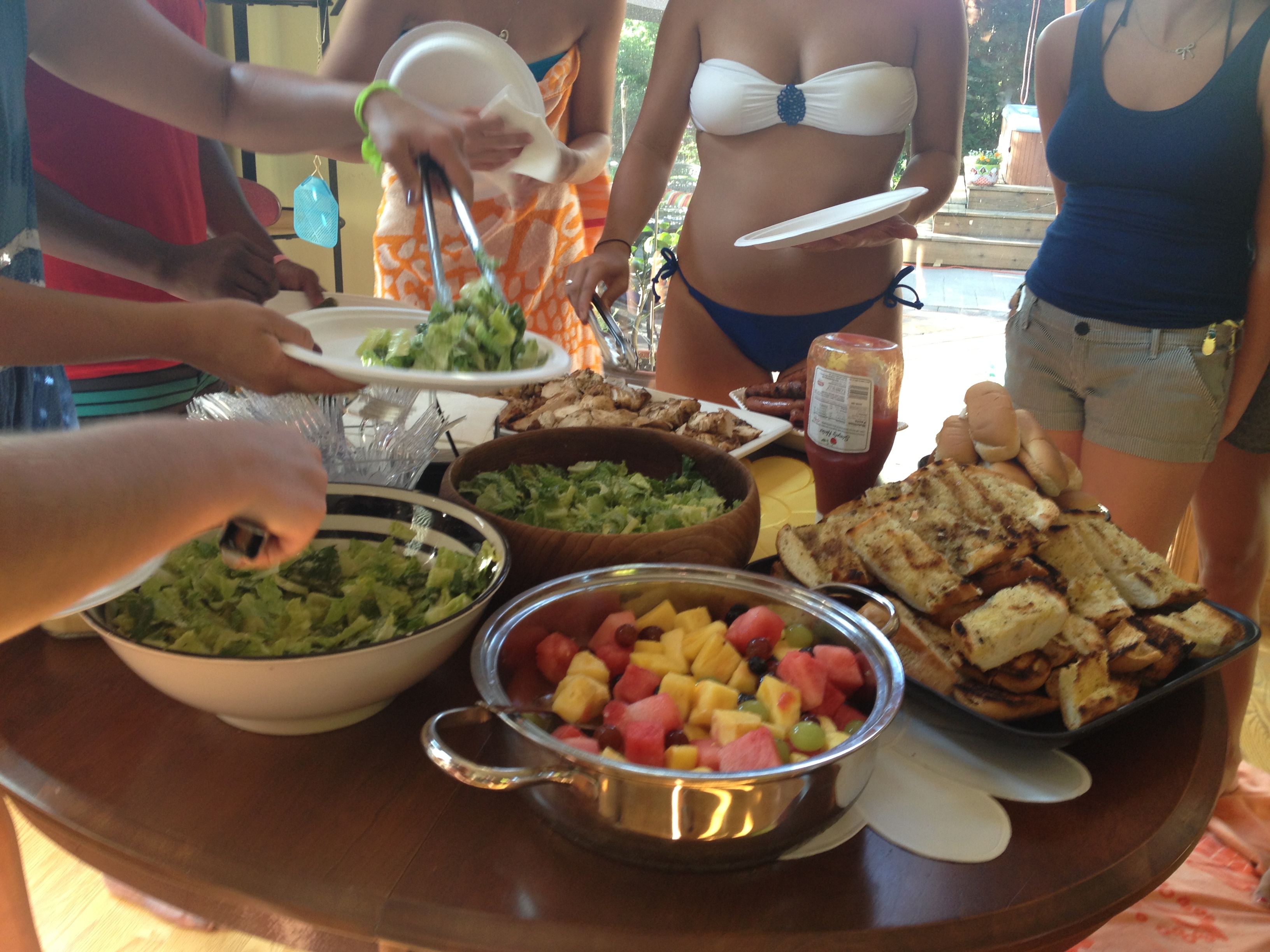 Again, clean up of lunch and then we began dinner preparation. Chicken Cesear Salad with grilled french bread. It is perfect for a gaggle of girls all hungry but watching their figures. (Some boys stopped by, so I threw out some grilled dogs for ‘filler’. Good thing, they were gone in a heartbeat!)