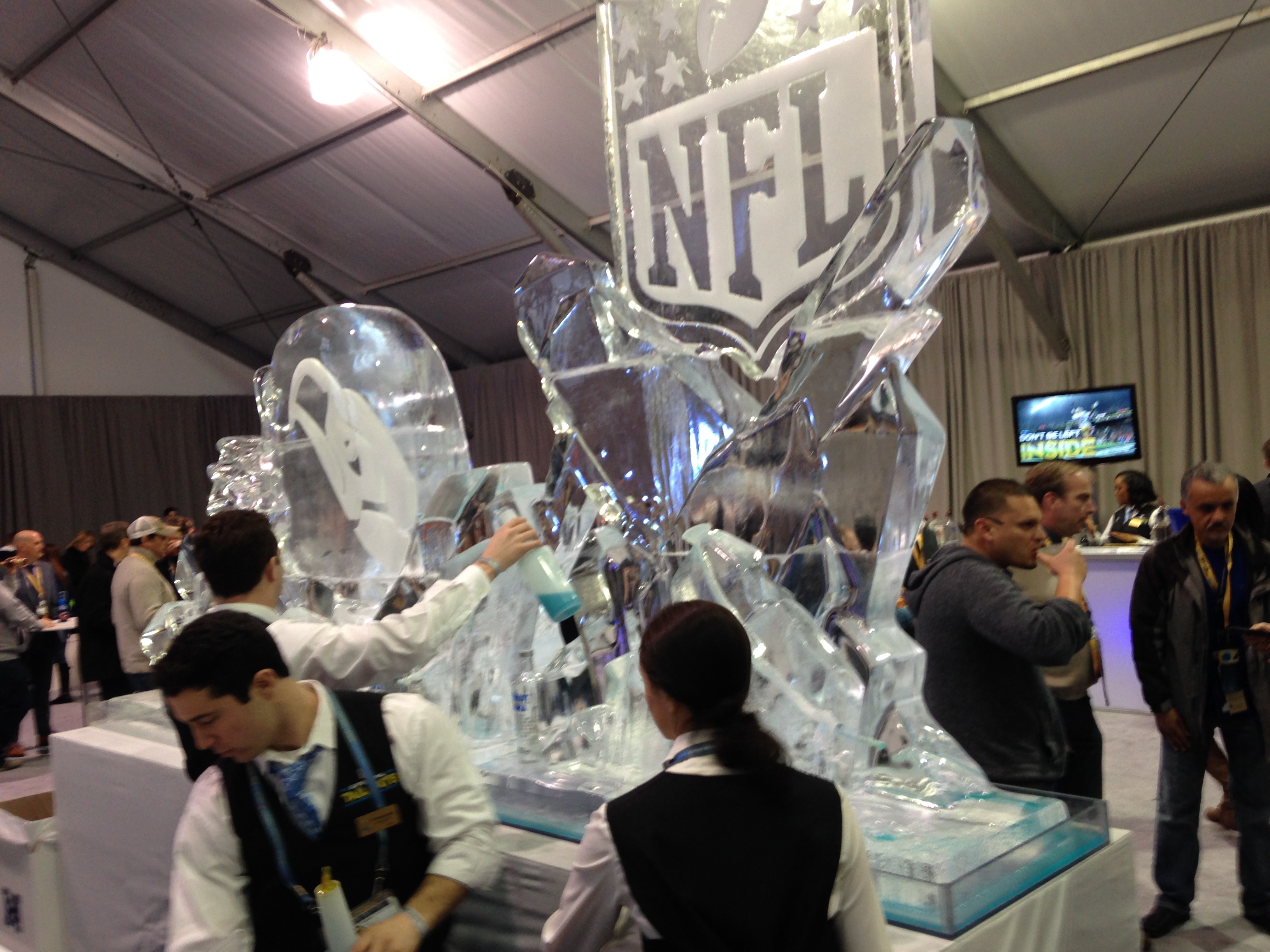 Flanking either side of the stadium were giant tents, one dedicated to the Seahawks, one to the Broncos. We were smart to start at level one, breeze through, then move to the upper levels quickly before the rest of the crowd had arrived. By the time we were done with the top level, the timing was perfect to head back to the main level and hang out in the team tents (which had better bars anyway) where it was much cooler, with the live concert music blasting through the doorway.