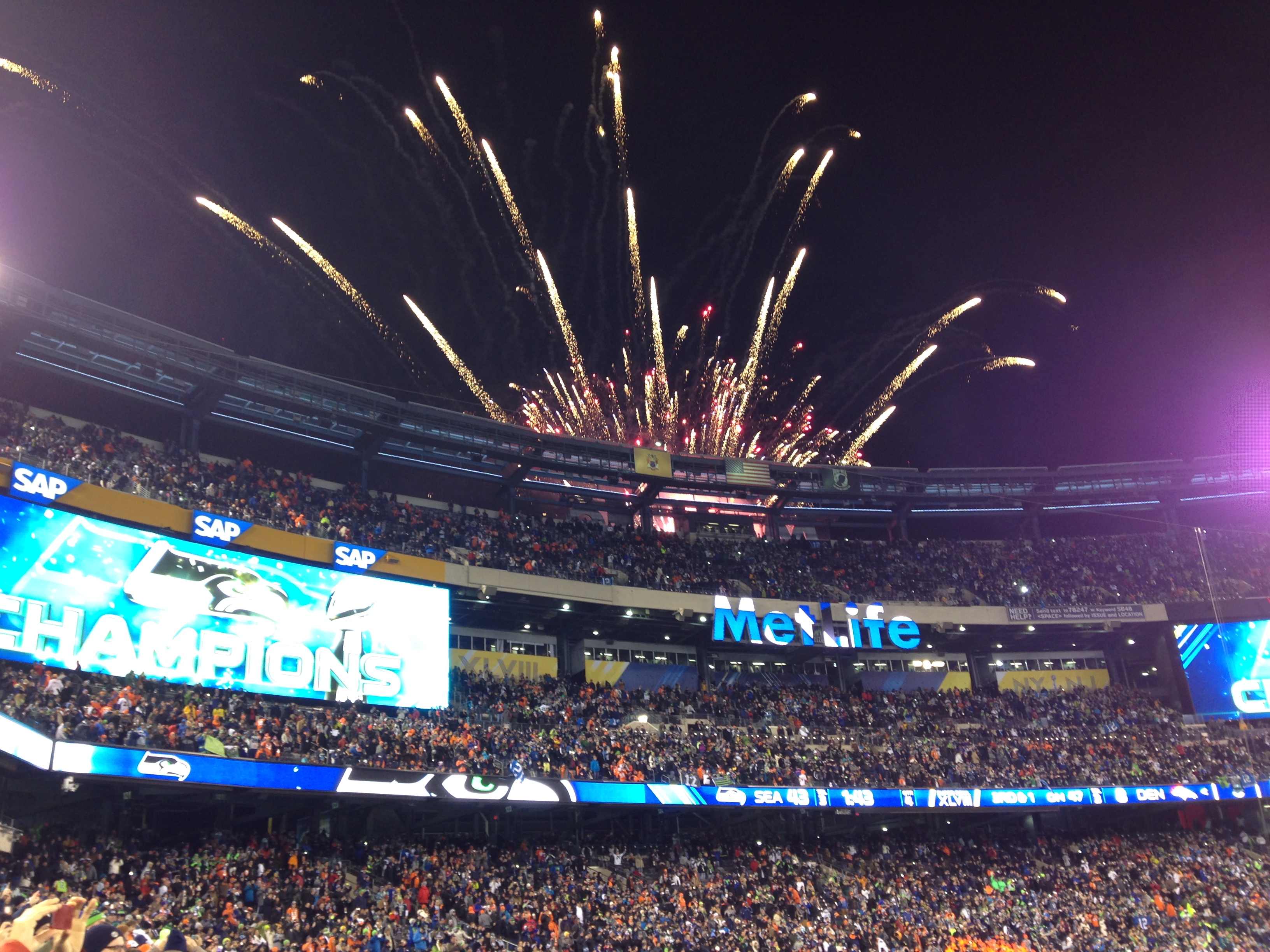 For the number of Broncos fans who surrounded us, well, let’s just say they had a less than enjoyable experience. Halftime was, meh. The acoustics were not the best in an open air stadium but the fireworks were amazing! Bruno Mars reminded me of really great MoTown sound and feel, but the Chili Peppers?? Seriously, put on a shirt man! You are at the SuperBowl, live, with millions of families and small children watching! I found it tacky, in poor taste and boring repetitive music. For the love of pete, even Mick Jagger had the decency to wear a shirt that covered his chest. To show up half naked, prancing about, is just insulting to the audience. (I know some love the Chili Peppers, and to each his/her own. It was the attire, or lack thereof, I have a problem with)