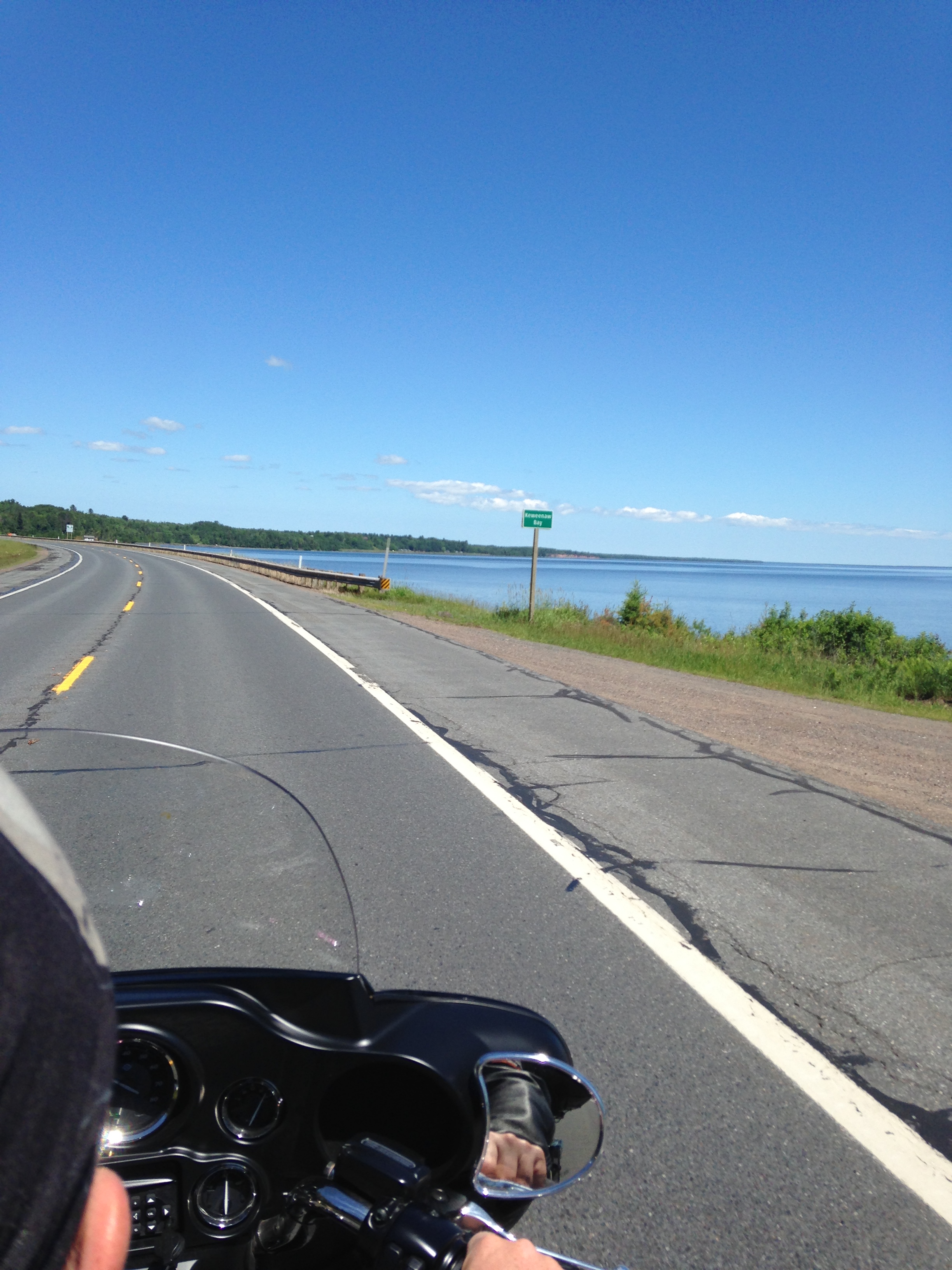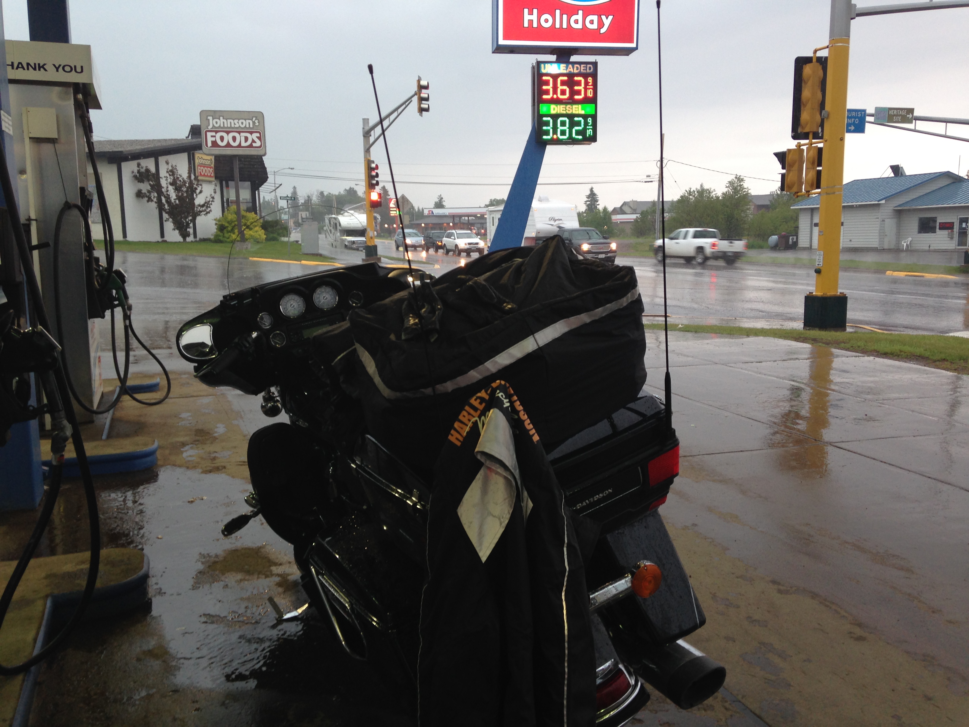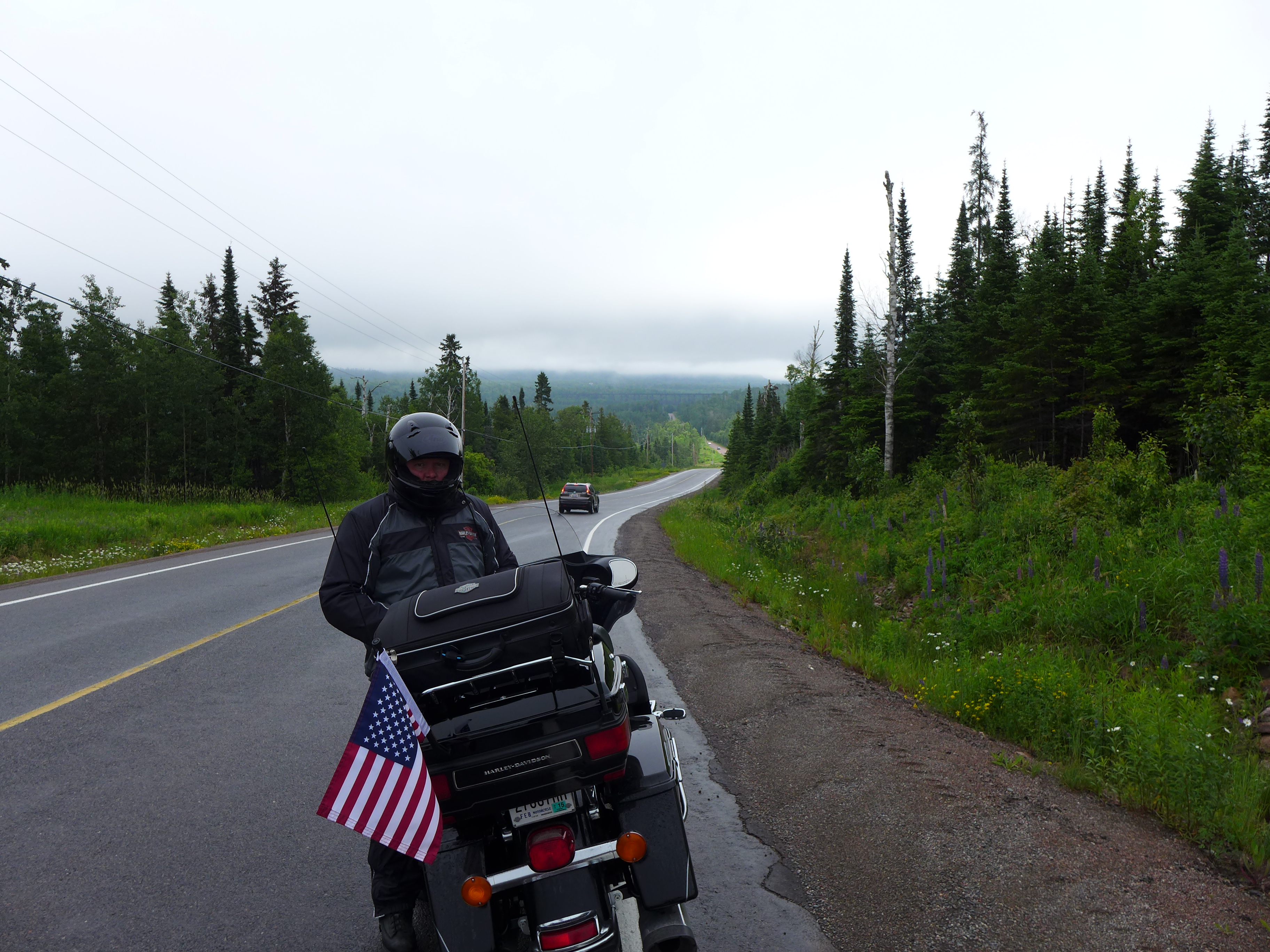 Today started with a lazy pace. The gloom cleared and the sun came out. Our wet gear had finally finished drying on the fan unit in the room, so we grabbed a bite from the breakfast counter in the lobby and loaded up. The Thunder Bay H-D shop had JUST opened as we cruised by, so we stopped in to see what they had. Small, nice, and a friendly staff. They were able to recommend Rollies, a stogie stop for hubby to stock up on for the trip. The hunt for cigars was on! And, this is where a lovely morning goes a little wonky.
