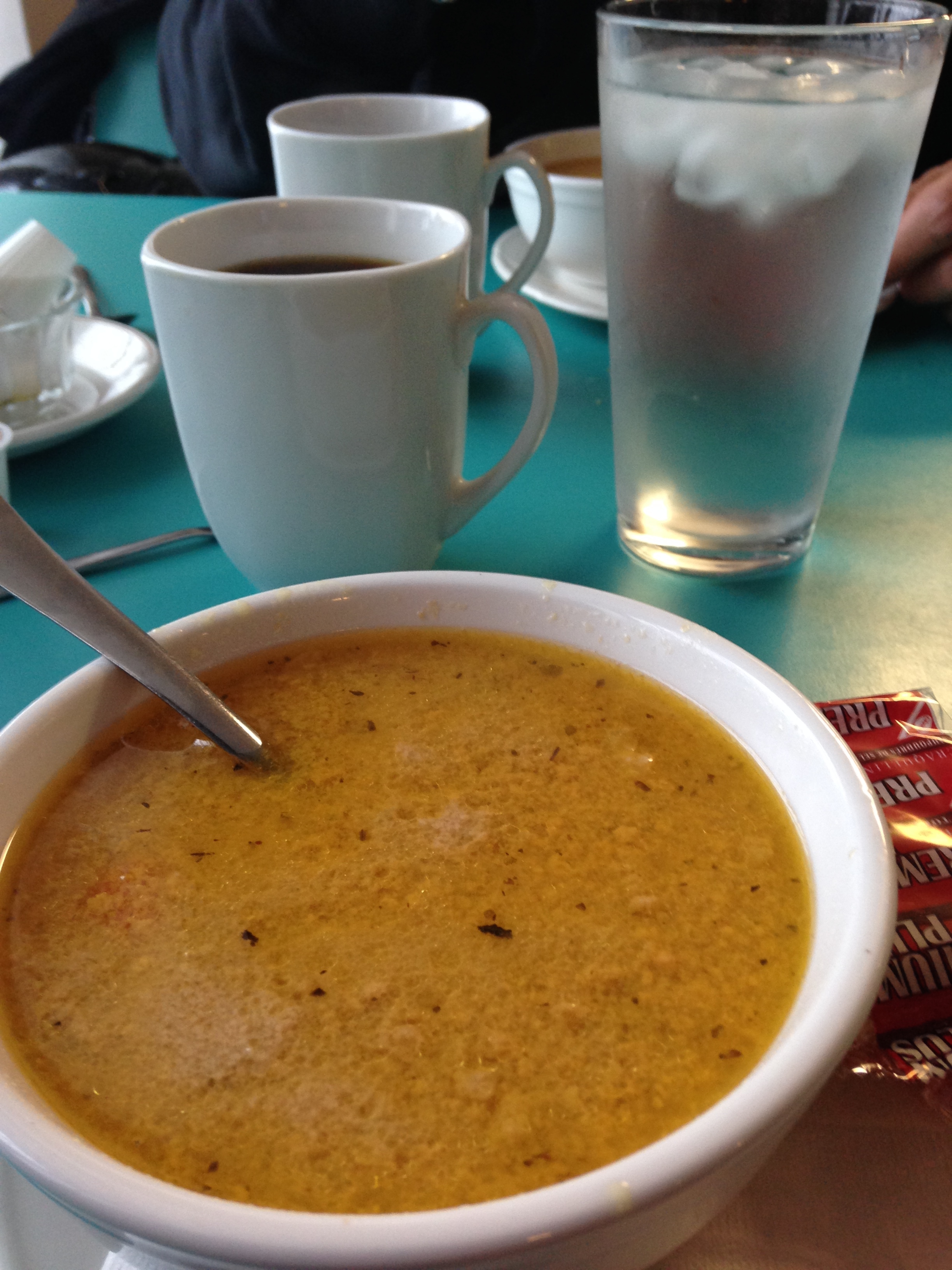 What it did have was a cute little diner called Audrey’s Place, right on the Hwy. (Gus was the name on the signage, but we learned it was called Audrey’s Place, and under new ownership). The dinner menu was simple, but food good. The chicken soup was homemade and delicious, and the salad fresh.