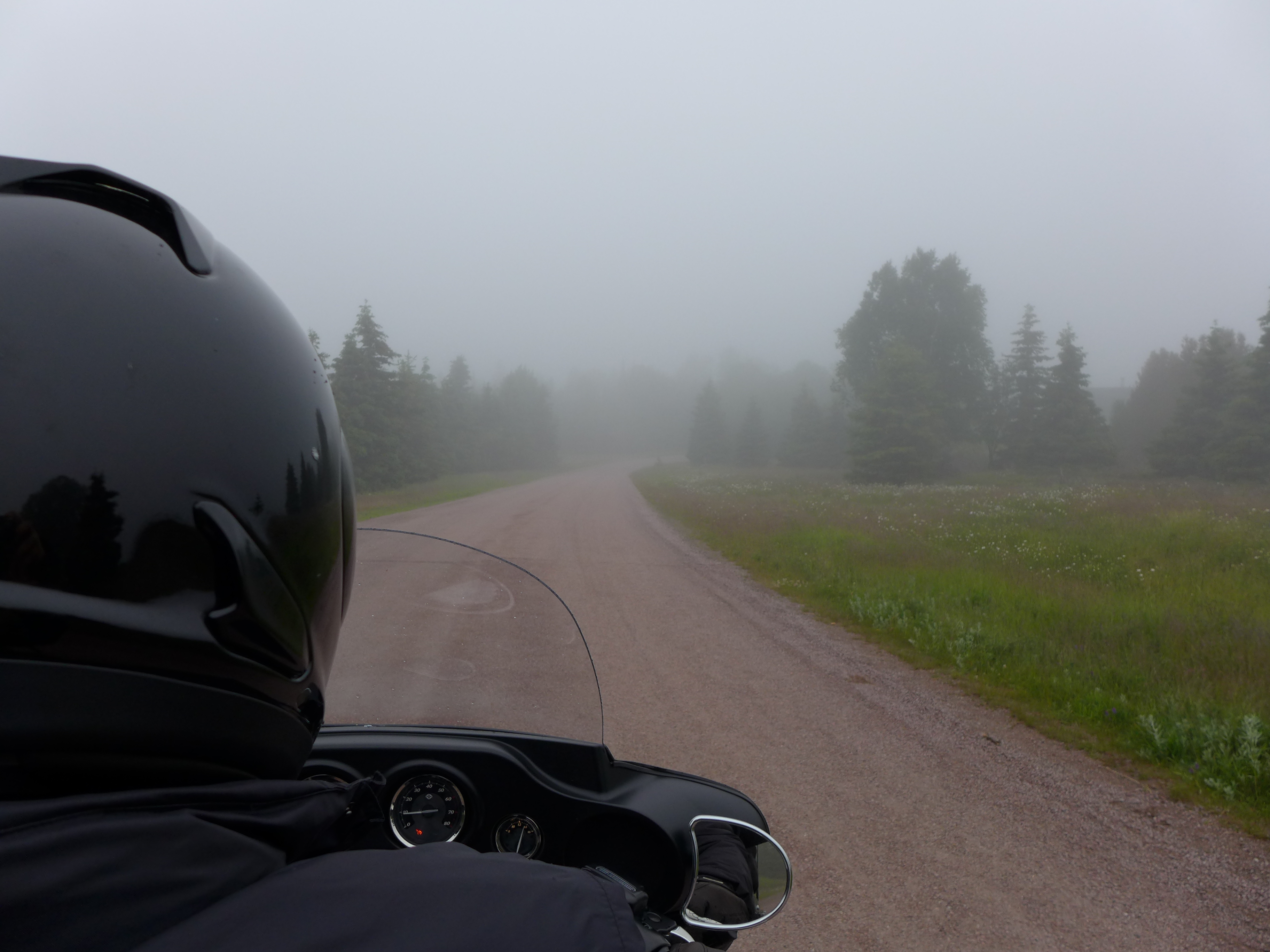 I really wish the weather had cooperated, but alas, ’twas not to be. The storm we rode through the night before was moving with us, from west to east. We were just ahead of it, but as you can see, it was a wee bit foggy. Beautiful. But foggy.